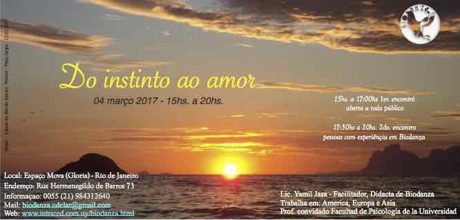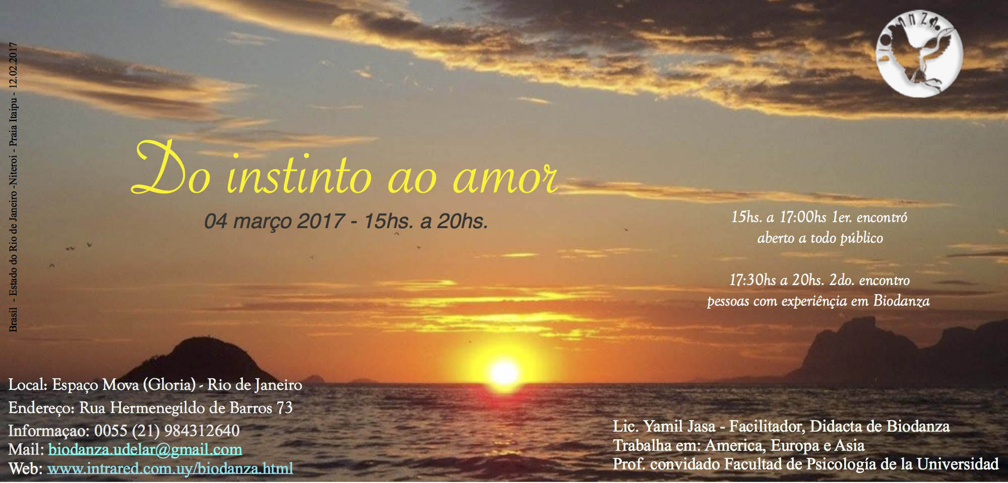 É uma oficina dupla (2 encontros) de Biodança para abordar motivação, desejo e o prazer de viver, a partir do instinto, ao mais amoroso. A paixão por fazer o que fazemos, onde e com quem fazemos é o impulso inicial de qualquer ação. Vivendo o prazer de nossa existência ligado ao amor, é fundamental para a qualidade de nossas vidas. Vibrar com nossas qualidades, habilidades e possibilidades é o caminho que escolhemos para permitir o amor em nós. O amor por nós mesmos, com os outros e com tudo o que existe ao nosso redor. O amor é a melhor maneira de fazer..